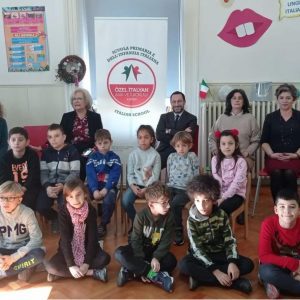 In collegamento Zoom con Roma abbiamo assistito alla cerimonia di premiazione del concorso ArteOltreConfine, patrocinato dal Ministero degli Affari Esteri e della Cooperazione Internazionale, dal Ministero dell’Istruzione, dal Museo Statale Tattile Omero e altri. Grazie al console d’Italia a Izmir Valerio Giorgio, che ci ha informato dell’iniziativa suggerendoci di partecipare, tra tutte le scuole italiane all’estero, nella sezione primarie, siamo risultati secondi con la nostra reinterpretazione della “Bocca della verità” di Mario Ceroli. La nostra opera è esposta alla Farnesina vicino a quella originale.